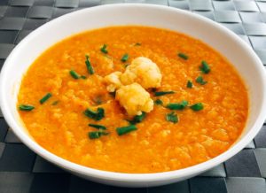 1. Cauliflower Sweet Potato Soup >